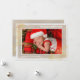 Pinhos dourados e felpudos (não são de folha metálica) em uma borda marfim e creme destacam a foto do seu bebê recém-nascido e sua mensagem de Natal na frente. As informações de nascimento do seu bebê estão no verso em letras elegantes. *Adicione mais fotos ou mais detalhes no verso com o link personalizar. Selecione Matte para papel mais pesado e Alta Definição para a melhor qualidade de foto.