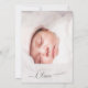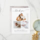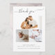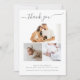 Este elegante cartão de nascimento de recém-nascidos apresenta um fundo branco simples e minimalista e uma caligrafia de cinzas. O cabeçalho "obrigado você" está em um roteiro de caligrafia caprichosa, e seu texto personalizado - nome do bebê e estatísticas - está em tipografia clássica. A placa apresenta uma coleção de fotos de três fotos. O reverso apresenta uma foto de cheio. Crie seu próprio anúncio de nascimento e cartões de agradecimentos de chá de fraldas clicando no botão "Personalizar" e substituindo os modelos por seus próprios detalhes e fotografias. Perfeito para uma menina e um bebê!