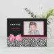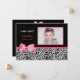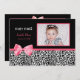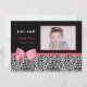 Anuncie à sua família e amigos o nascimento da sua bebê precioso enviando este anúncio de nascimento de fotos trendy com manchas-leopardo brancas e pretas e um arco de fita rosa-quente. As palavras "menina!" estão escritas no estilo branco de Hollywood. Adicione uma foto da sua filha e personalize adicionando nome do bebê, data de nascimento, peso e comprimento. Frente e traseira personalizáveis. Para mais chás de fraldas, visite a loja de prendas PhotoographicTKDesign.