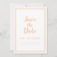 Anuncie seu próximo evento com nossos cartões de anúncio de casamento Save The Date modernos e simples, em pêssego e branco! O conjunto de convites apresenta um design minimalista com uma borda de quadro duplo em pêssego contemporâneo em um fundo branco crocante. A redação tradicional fornece sofisticação atemporal e moderna. Personalize o design do casamento com seus primeiros nomes e data em letras e caligrafia em pêssego. O verso do cartão é igual, em pêssego sólido.