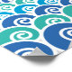 Poster com design de diferentes tons de ondas azuis com a ascensão solar no horizonte.