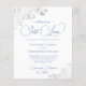 Estes simples convites para casamento são elegantes e na moda, enquanto ainda são amigáveis e baratos. Eles apresentam um design elegante com delicadas caramujos de folha de cinza prateada e espirais nos cantos e modernas inscrições azuis e poeirentas que dizem: Nada de Rico, Apenas Amor. A parte traseira tem espaço para detalhes, assim como um código QR personalizável para direcionar facilmente seus convidados para o site de casamento para obter mais informações e/ou RSVP. Uma bela maneira de convidar seus amigos e família a compartilhar sua alegria no seu dia especial.