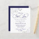 Estes simples convites para casamento são elegantes e na moda, enquanto ainda são amigáveis e baratos. Eles apresentam um design elegante com delicadas caramujos de folha de cinza prateada e espirais nos cantos e uma moderna letra azul de marinho que diz: Nada de Rico, Apenas Amor. A parte traseira tem espaço para detalhes, assim como um código QR personalizável para direcionar facilmente seus convidados para o site de casamento para obter mais informações e/ou RSVP. Uma bela maneira de convidar seus amigos e família a compartilhar sua alegria no seu dia especial.