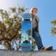 Este design de skate apresenta palmeiras, céus azuis e a frase "Apenas boas vibrações". Esportes e tendências agora. Adultos, adolescentes, crianças, estudantes, netos, graduação; Natal, aniversários e outras ocasiões. Você pode experimentar a emoção do skate e ainda ser arrastado e legal. Quer esteja em Cannes, Papais noeis de Mônica, na praia de Veneza ou no seu espaço de skate, divirtam-se.