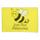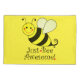 Apenas seja slogan impressionante com um amarelo Bumble a abelha. Design dos amantes da abelha. Bonito Bumble o sorriso dos desenhos animados da abelha com corações e redemoinhos. Citações inspiradas e inspiradores.