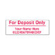 Este design de carimbo neutro contém a mensagem "Apenas para depósito", juntamente com um nome pessoal/comercial personalizado e um número de conta. Pode ser utilizado por um funcionário de escritório ou por um operador de pequena empresa para acrescentar de forma eficiente um endosso restritivo a um cheque.