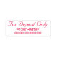 Este sofisticado design de carimbo contém a mensagem "Apenas para depósito", além de um nome pessoal/profissional e número de conta personalizados. Talvez possa ser utilizado por um indivíduo ou por um profissional de contabilidade para rapidamente acrescentar um requisito restritivo a um cheque.
