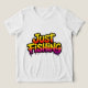 Brilhante e ousado "Apenas Pescando" em gradiente vibrante de arco-íris com efeito de pintura gotejante brilhante. Slogan de pesca simples, porém poderoso, para aqueles que vivem por uma regra — apenas pescando. Presente divertido perfeito para pescador, pai pescador, marido, namorado ou qualquer pescador apaixonado.