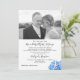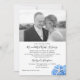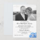 Anúncio de casamento com foto e convite apenas para a recepção com tema de praia / litoral. O design do jardim à beira-mar tem um canto inferior com hidrângea azul e estrelas-do-mar. Os cartões brancos têm um modelo de foto no topo. O texto de exemplo apresenta os novos "Sr. e Sra." e compartilha as informações da cerimônia privada de casamento. Em seguida, a recepção para os recém-casados é anunciada com data, hora e local, com informações de RSVP no canto inferior. O verso é de cor azul-cinza claro sólido. Cantos arredondados são opcionais.