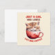Celebre o seu amor por gatos e café com o nosso adorável cartão de saudação "Apenas uma Menina que Ama Cats e Café"! Com um gatinho fofo a espreitar de uma xícara de café vermelha, este charmoso trabalho de arte é perfeito para amantes de gatos e entusiastas de café, da mesma forma. Um presente delicioso para si mesmo ou para aquele especial que adora gatos fofinhos e momentos de café confortáveis.