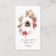 Uma adorável abelha de mel artística com flores cor-de-rosa-coral escuro e palmetto bronzeado deixa a aquarela em um cartão de visita de quadro floral para personalizar um apicultor, apiário. Tipografia colorida a preto e vermelho. Jardins e abelhas se juntam. Uma linda abelha rustica, floral.