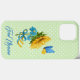 Mostrem o vosso apoio às pessoas da Ucrânia com esta capa de telefone bonito que apresenta a cor de água do girassol e a borboleta em cores da bandeira da Ucrânia sobre fundo pastel verde e bolinhas branca. Texto gratuito na Ucrânia com letra elegante