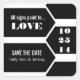 Simples com uma sensação de arte, estas Pontas para o Amor Salvem os Viciados em preto e branco são uma escolha elegante e moderna para anunciar seu próximo casamento. Este design apresenta caixas de seta que são facilmente personalizadas com o mês, a data e o ano em que você se casará e seus nomes. Clique no botão "Personalizar" para alterar fontes, cores de texto ou adicionar/remover texto adicional.