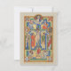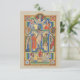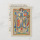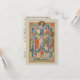 Jesus crucificou a iluminação medieval de uma missão. Bonito presente de arte católica para ocasiões religiosas, com a oração dos Apóstolos Criados nas costas. O artista medieval apresentou a Crucificação de Jesus dentro de um esquema complexo que inclui figuras simbólicas e alusões tipológicas. No centro, enquanto Jesus pendura na cruz, um centurião o apunhala com uma lança e outro homem lhe oferece uma esponja encharcada de vinagre. Em compartimentos ao lado, a Virgem e o Santo John choram a morte de Jesus. Você pode remover a explicação de texto da pintura para personalizar para sua própria ocasião.