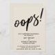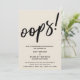 A distinção deste conjunto deve-se à fonte moderna, escrita à mão, utilizada para frases de sotaque. Se você está na posição de precisar informar seus convidados de casamento que você teve que mudar seu grande encontro, aqui está uma opção humorística. Nesta peça, a letra do script com letra manuscrita foi usada para criar um gráfico simples que mostrava a palavra "oops!". Use os campos modelo para adicionar seus detalhes pessoais e tornar este design único e moderno seu próprio. O plano de fundo pode ser alterado para qualquer cor que você preferir. Também está disponível uma opção horizontal. Por favor, responda a quaisquer solicitações especiais ou personalize a assistência. 100 //