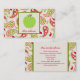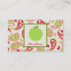 Um cartão de visita do professor que caracteriza uma ilustração de uma maçã verde dentro de um quadrado com guarnição verde na parte dianteira. O fundo na parte dianteira e na parte traseira é paisley cor-de-rosa e verde. Personalize o texto na parte dianteira e na parte traseira.
