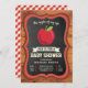 Encontrem seus convidados com este chá de fraldas bonito, convidando com uma adorável maçã com elementos vibrantes contra um quadro e fundo de madeira. Basta adicionar os detalhes do seu evento neste modelo fácil de usar para torná-lo um convite de tipo único. Sacudir a carta para revelar um padrão elegante de gingham vermelho na parte de trás da carta.