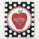 Um mousepad para os professores que caracterizam uma ilustração de uma maçã vermelha decorada com uma beira preta, um coração preto com bolinhas brancas, e texto branco que diz o "PROFESSOR." A beira é preta com bolinhas brancas.