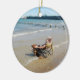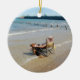 Este é um ornamento pessoal de meu marido que relaxa na praia com seus companheiro e melhor amigo constantes, nosso cão. Era um dia muito morno no fim do verão e pôr sua cadeira de praia na água com as ondas que lavam sobre elas. O melhor amigo do homem e da mulher é frequentemente seu cão, que os ama incondicional e sacrificaria sua vida para os salvar.