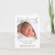 Um simples bebê branco ou um filho dobrou o anúncio de nascimento do cartão. A frente apresenta a foto do seu recém-nascido, o nome do cheio, a data de chegada e as estatísticas de natalidade e "Apresentando" escrito em um roteiro de na moda final com um coração florescente. Na dentro do cartão, você pode adicionar três fotos adicionais e um obrigado personalizado, você ou outra mensagem, com espaço para uma nota manuscrita à esquerda.
