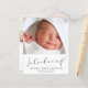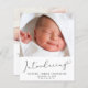 Um anúncio de nascimento neutro em relação ao gênero, simples e bonitinho em termos de orçamento. A frente apresenta a foto do seu recém-nascido, o nome do cheio, a data de chegada e as estatísticas de natalidade, e "Apresentando" escrito em um roteiro de na moda com o fim de um coração florescente. No verso, você pode adicionar uma foto adicional, nomes de pais e irmãos, e um obrigado, visitação ou outra mensagem.