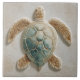 This sea turtle artwork blends soft aqua tones with warm sandy neutrals and a textured coastal look. Ideal for bathrooms, kitchens, and beach house walls, it brings a calm and natural ocean presence to any seaside-inspired interior.