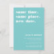 Precisa adiar ou remarcar seu casamento? Avise os hóspedes com estas cartas modernas e levedadas em aqua de turquesa cúbica. Design apresenta "mesma hora, mesmo lugar, nova data" no topo com sua nova data de casamento e detalhes abaixo.