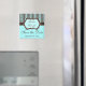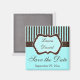 Esta imã salve a data azul-aqua, marrom e listrada branca corresponde ao convite de casamento mostrado abaixo. O texto é personalizável.