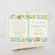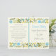 Cerimônia de núpcias azul-Vintage aqua, amarela, de borda floral e programa de dobragem de festas, que ilustra uma fronteira floral feita de flores brancas bonito em tons de aqua, amarelo e verde-oliva em fundo de marfim. Texto em cinzas e aqua. Este design de casamento bonito, moderno, elegante e na moda é completamente personalizável e faz parte de um casamento. Perfeito para o seu casamento de verão no jardim ou floresta. Você terá que dobrá-lo no centro. Escolha apenas este tipo de valor de papel à medida que ele se dobra bem.