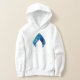 Veja esta versão estilizada do logotipo Aquaman, blues e verdes com efeitos de luz refratados como se estivesse debaixo d'água, acentuado com malha hexagonal.
