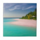 Ceramic tile with a beautiful photograph. A scenic tropical beach with aquamarine water and a white sandy beach with a lush forest in the back.