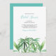 Este chá de panela de praia apresenta o nome da noiva, definido em uma tipografia de script manuscrito em na moda com detalhes de evento em uma serra de cinza de carvão clássico, se houver, em um fundo branco nítido. Uma réplica das minhas folhas originais de palmeira tropical aquarela em tons de verde enfeite a frente. A carta de convite reverte para uma cor azul-turquesa de vidro-do-mar complementar. Uma chic costeira, mas elegante, para o almoço de luau de verão e para chás de panela à borbulha ou à lua. Para ver mais ideias de chá de panela de aquarela estilo ilha de Victoria grigaliunas, visite DotellABelle no Zazzle.