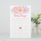 Caça chá de fraldas Folha de papel Baby Bingo com buquê elegante de flor d'água de rosas e peônias com folhas e botões. Cores claras: cor-de-rosa, pêssego, coral, verde, laranja. Ideal para chá de fraldas de menina.