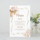 Design de cartão elegante com rosas cor d'água, cor d'água, rosas rosa pinceladas, grama-pampas, falso quadro de rosa, em fundo branco. Use a ferramenta Personalizar para adicionar suas informações. Para itens correspondentes, visite minha Coleção Floral Elegante de Grass.
