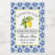 Aquarela Limão Azulejo Azul Limoncello Mini Rótulo