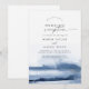 Este convite de recepção de casamento aquarela azul moderno é perfeito para uma festa pós-casamento contemporânea e elegante. A coleção de designs minimalistas, clássicos e elegantes apresenta pinceladas simples de tinta aquarela em tons de joias bonitos. Cartões de RSVP são vendidos separadamente, ou você pode adicionar informações de RSVP no verso do cartão.