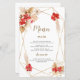Design charmoso com uma falso estrutura dourada adornada com grama de pampas de aquarela, orquídeas vermelhas, folhas de palma secas, sobre fundo branco. Use a ferramenta Personalizar para adicionar suas informações. Itens correspondentes podem ser encontrados na minha Coleção Floral Pampas Grass.