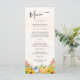 Este Elegante Menu de Janta de Ação de Graças apresenta um belo design de aquarela de abóboras, flores e folhas em tons vibrantes de laranja, rosa, amarelo, azul e verde, definindo o clima perfeito para sua reunião de feriados.