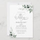 convite para casamento verde de sábado, folhagem verde de aquarela e roteiro elegante de letras negras. Personalize o texto e as cores.