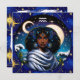 A fun horoscope Aquarius blank card with an African-American woman with a stars and moon celestial background.