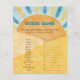 Cor Única de Água Placa de Jogo de Adivinhação de Bebê Chá de fraldas com tema sunshine em cores amarelo, azul e laranja queimado.