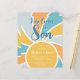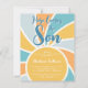 Este convite para chá de fraldas de um rapaz com temática solar apresenta "Aqui Vem O Filho" em tipografia na moda num fundo de explosão solar colorido. Facilmente personalizável.