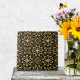 Design de azulejo de cerâmica Elegante com um padrão sem costura feito de formas geométricas em tons de ouro falsos sobre fundo preto.