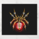 Aranha mecânica, com pá-pá de ouro, engrenagens de latão e uma lâmpada de vidro vermelha sobre fundo preto. Estilo Steampunk.