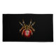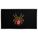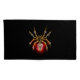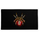 Aranha mecânica, com pá-pá de ouro, engrenagens de latão e uma lâmpada de vidro vermelha sobre fundo preto. Estilo Steampunk.