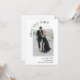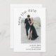 Bela simplicidade e estilo artístico fazem com que este casamento artístico moderno salve a pop com apelação o cartão de data. ele apresenta um modelo de foto em forma de arco na frente do cartão para carregar sua foto desejada. Há uma modelo de texto na frente da carta para personalizar com os nomes da noiva e do noivo e a data de casamento planejada. A parte traseira deste cartão tem um exemplo de mensagem com detalhes adicionais para personalizar. Mostrada aqui com um fundo branco comum, esta placa está disponível em outras cores também.