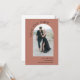 Bela simplicidade e estilo artístico fazem com que este casamento artístico moderno salve a pop com apelação o cartão de data. ele apresenta um modelo de foto em forma de arco na frente do cartão para carregar sua foto desejada. Há uma modelo de texto na frente da carta para personalizar com os nomes da noiva e do noivo e a data de casamento planejada. A parte traseira deste cartão tem um exemplo de mensagem com detalhes adicionais para personalizar. Mostrada aqui com fundo terra-terra-cotta, essa carta está disponível em outras cores também.