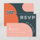 Um cartão de cercado RSVP de casamento moderno que sopra com pop de cor laranja, verde azul-lacrimogêneo e designs de arco de ranhura para uma víbora retro dos anos 70. Ele vem com um código de QR para RSVP ou para direcionar seus convidados para seu local de casamento.