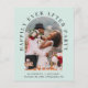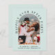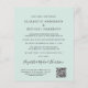 Anúncio do casamento verde da casa da moeda e convite para recepção. A frente mostra sua foto de casamento em um quadro de arco, "Feliz Festa Depois" em tipografia elegante e seus primeiros nomes, data de casamento e local. No verso, personalize seu anúncio e convite, adicione seus nomes em um script semelhante a assinatura e insira seu endereço de site de casamento para criar um código de QR digitalizável para seus convidados digitalizarem para RSVP on-line e obter detalhes adicionais.