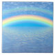 Reflexões de um arco-íris nas ondas do oceano